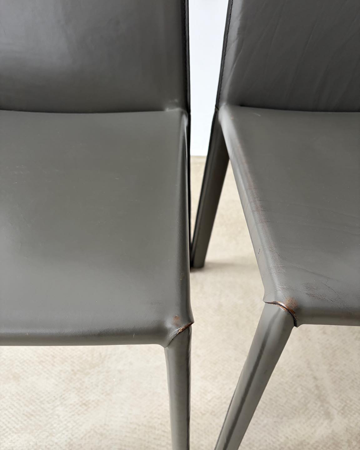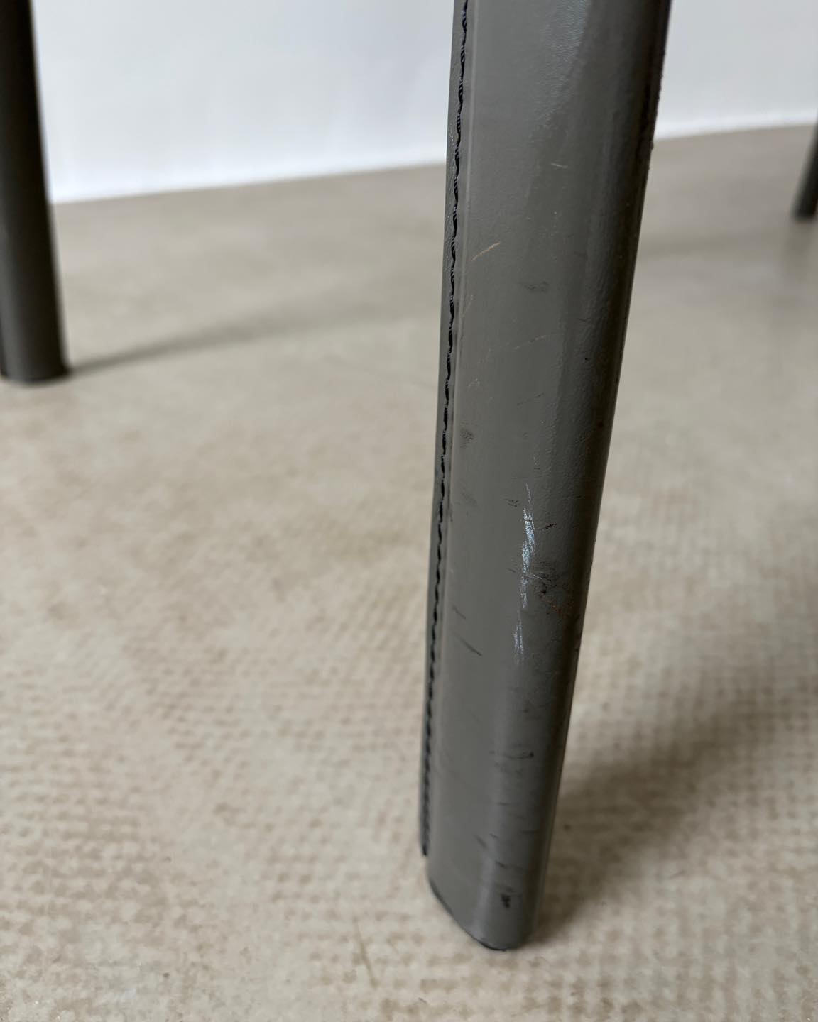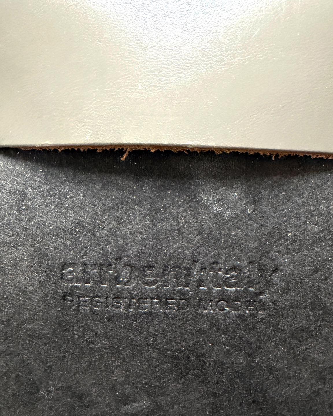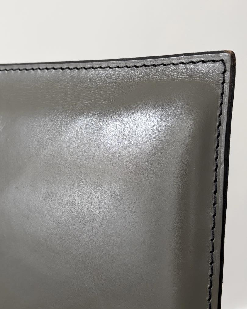 Krzesło włoskiej marki ARRBEN. Wykonane z grubej skóry siodłowej barwionej na kolor Ash, nieoczywistego odcienia szarości.