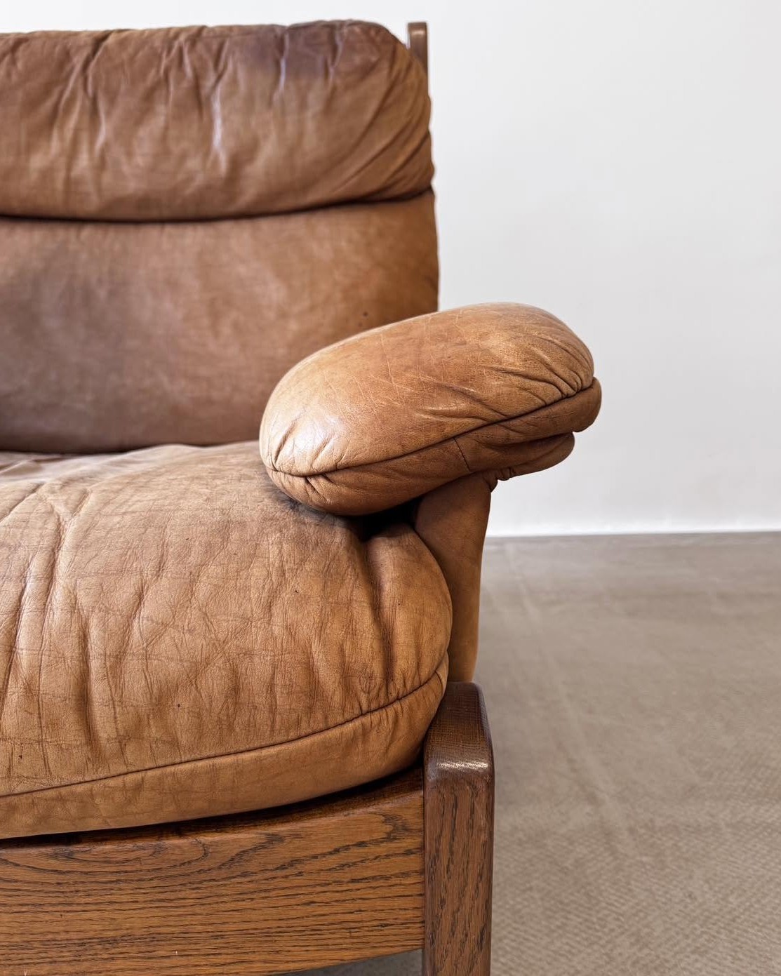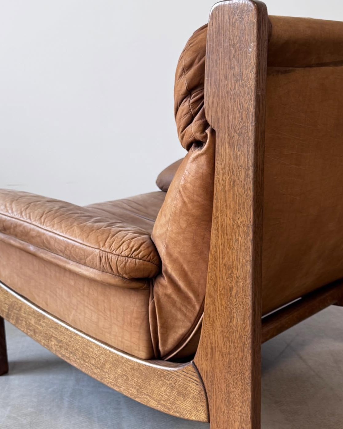 Materiały: skóra naturalna o wykończeniu nubukowym, rama z lakierowanego dębu.