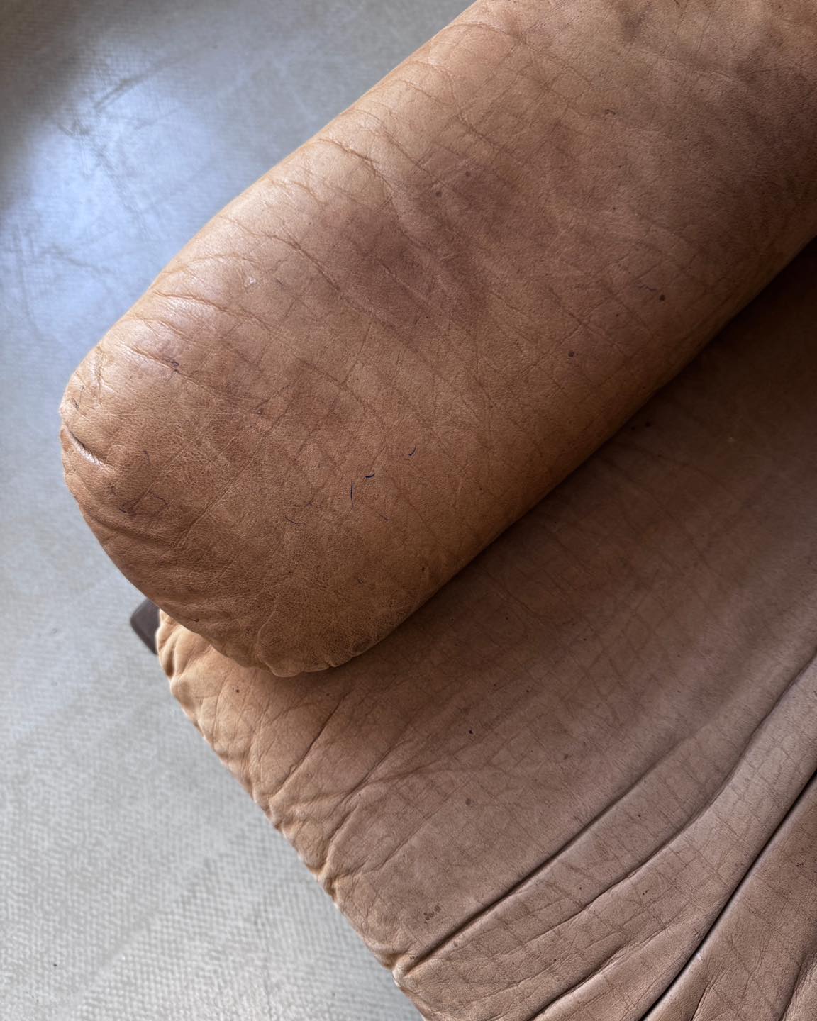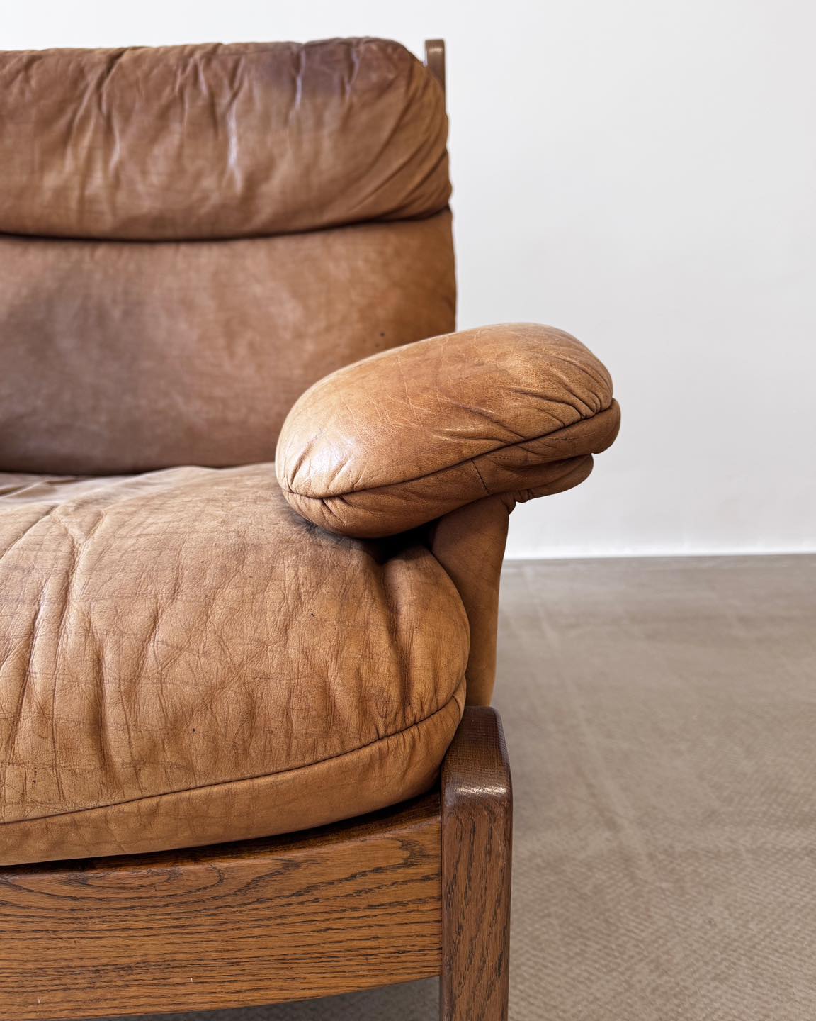 Stan: naturalny z widoczną patyną. Bez wad w postaci uszkodzeń (Na jednym podłokietniku maźnięcia długopisem, widoczne na zdjęciu). Pozostawiłyśmy wszystkie ślady użytkowania powstałe na przestrzeni lat, które czynią ten obiekt wyjątkowym.