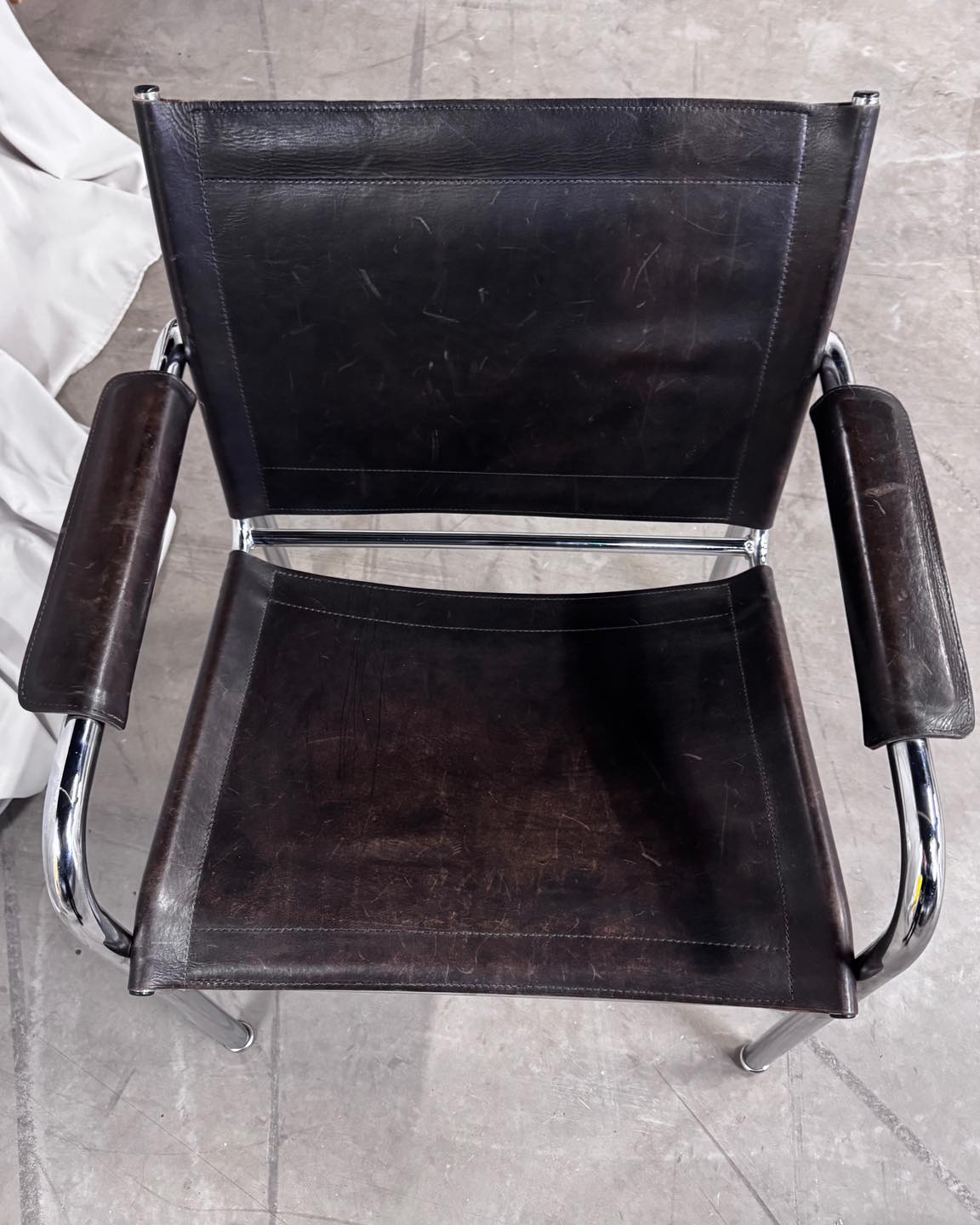 Mebel ikoniczny, nawiązujący do estetyki Bauhausu. Minimalistyczna forma ubrana w grubą, pięknie starzejącą się skórę.