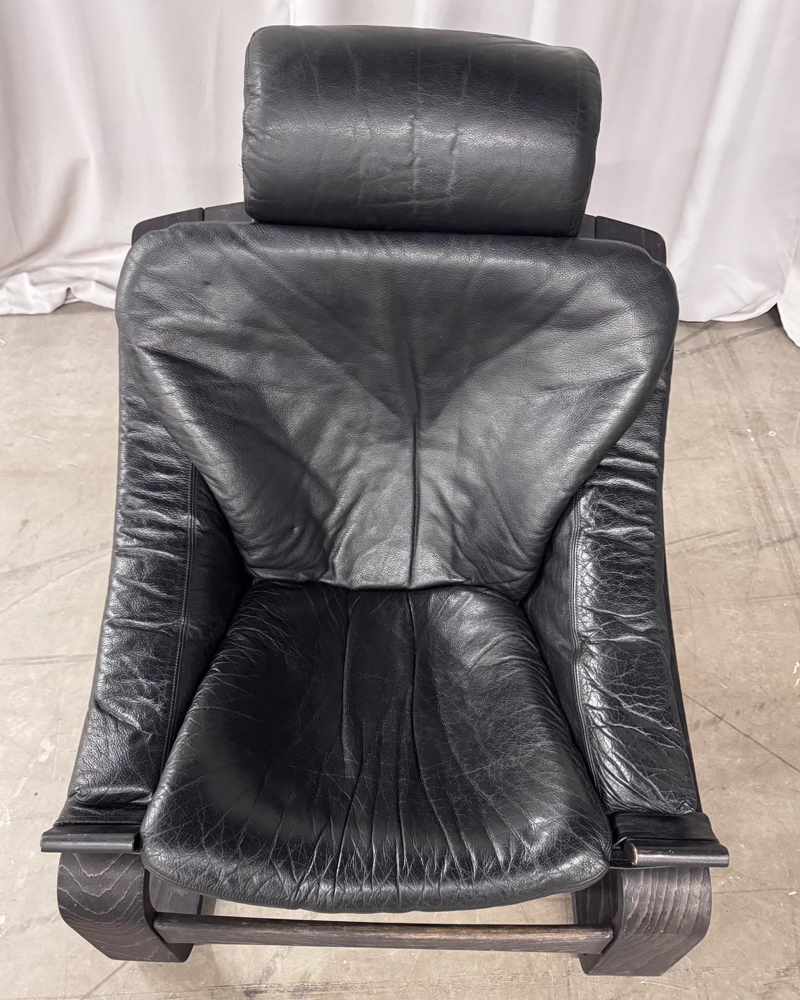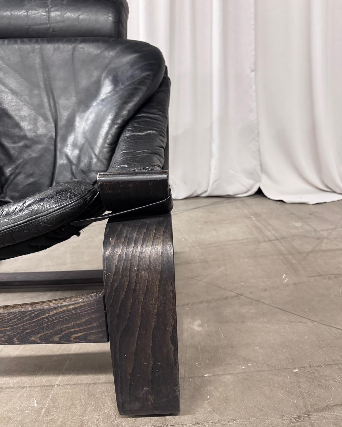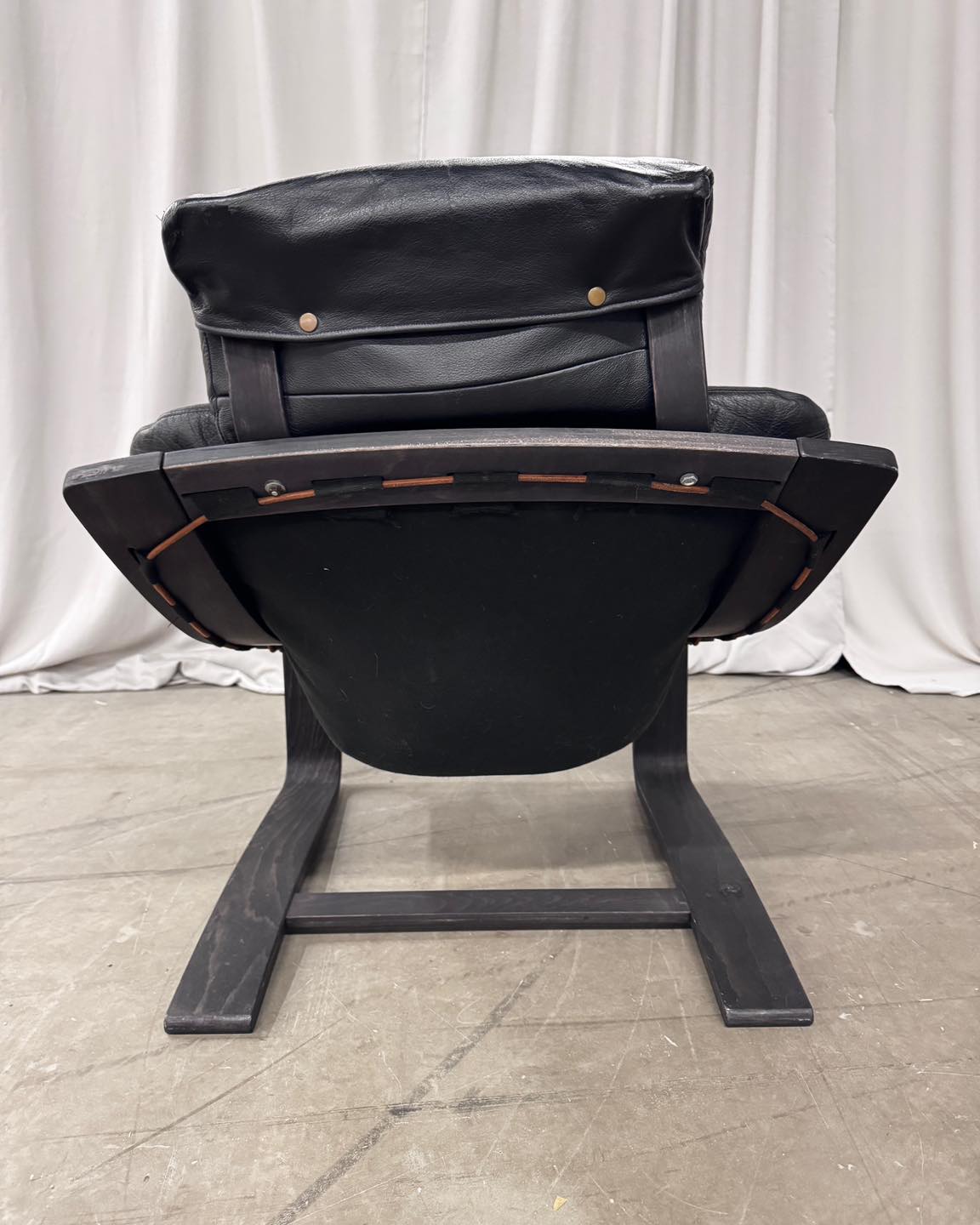 Materiały: gięta sklejka, skóra naturalna, rzemień, płótno bawełniane.