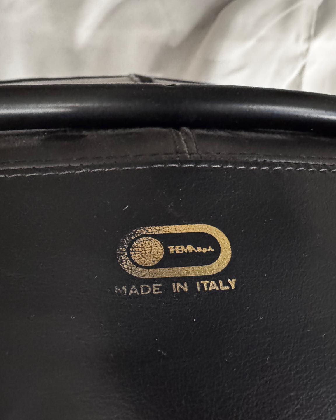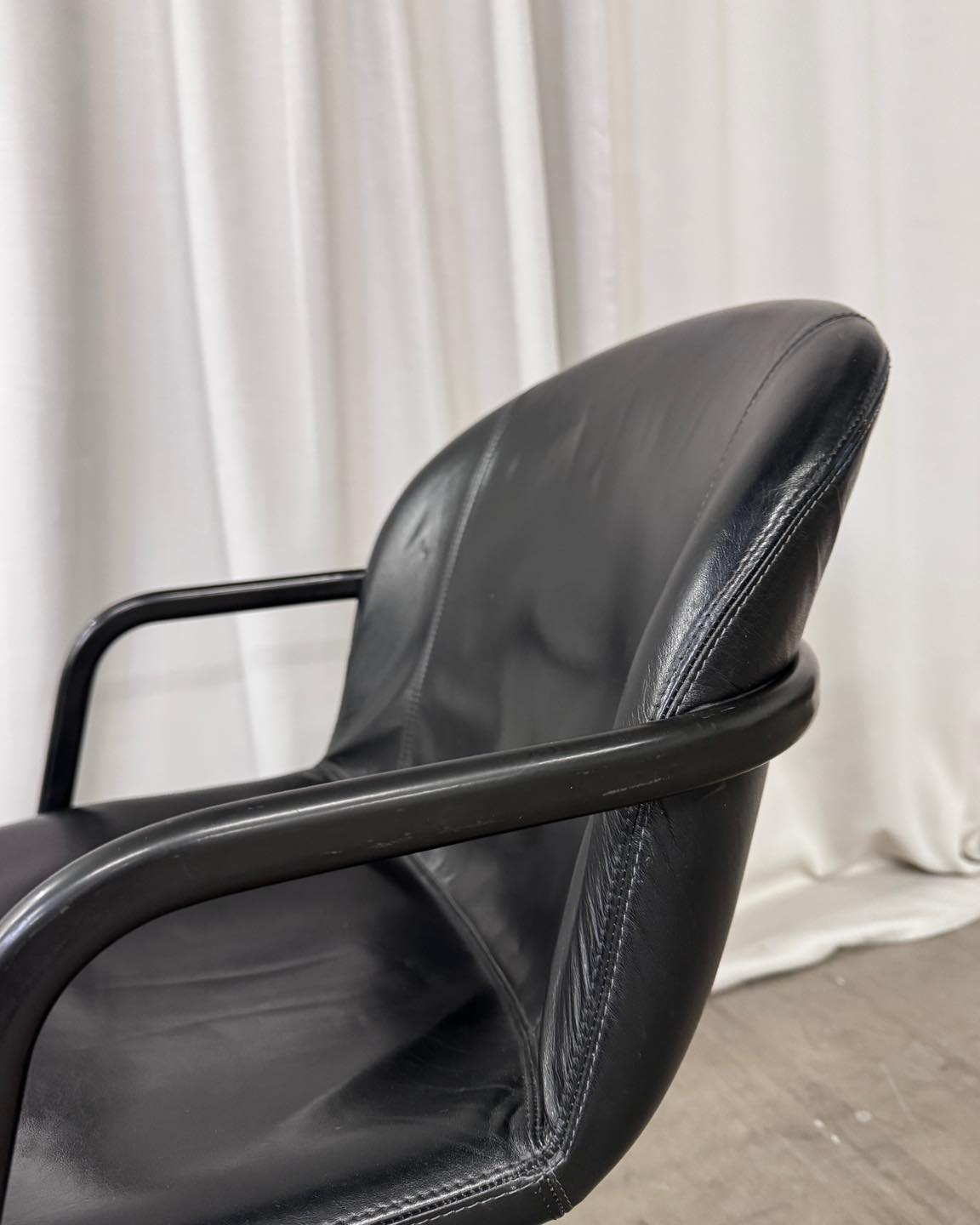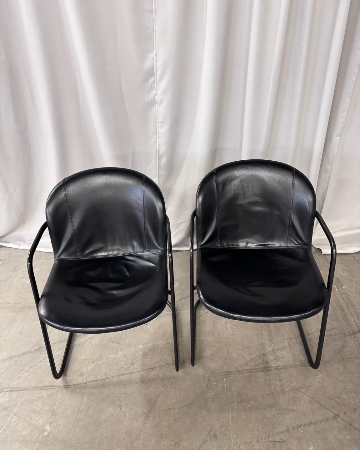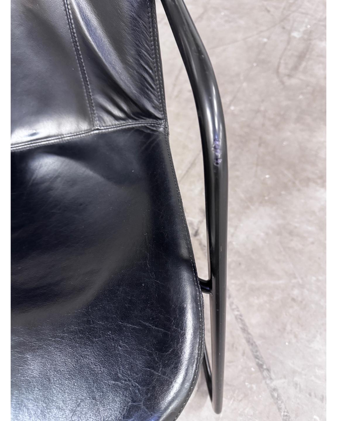 Materiały: stal malowana na czarno, tapicerka z czarnej skóry naturalnej.