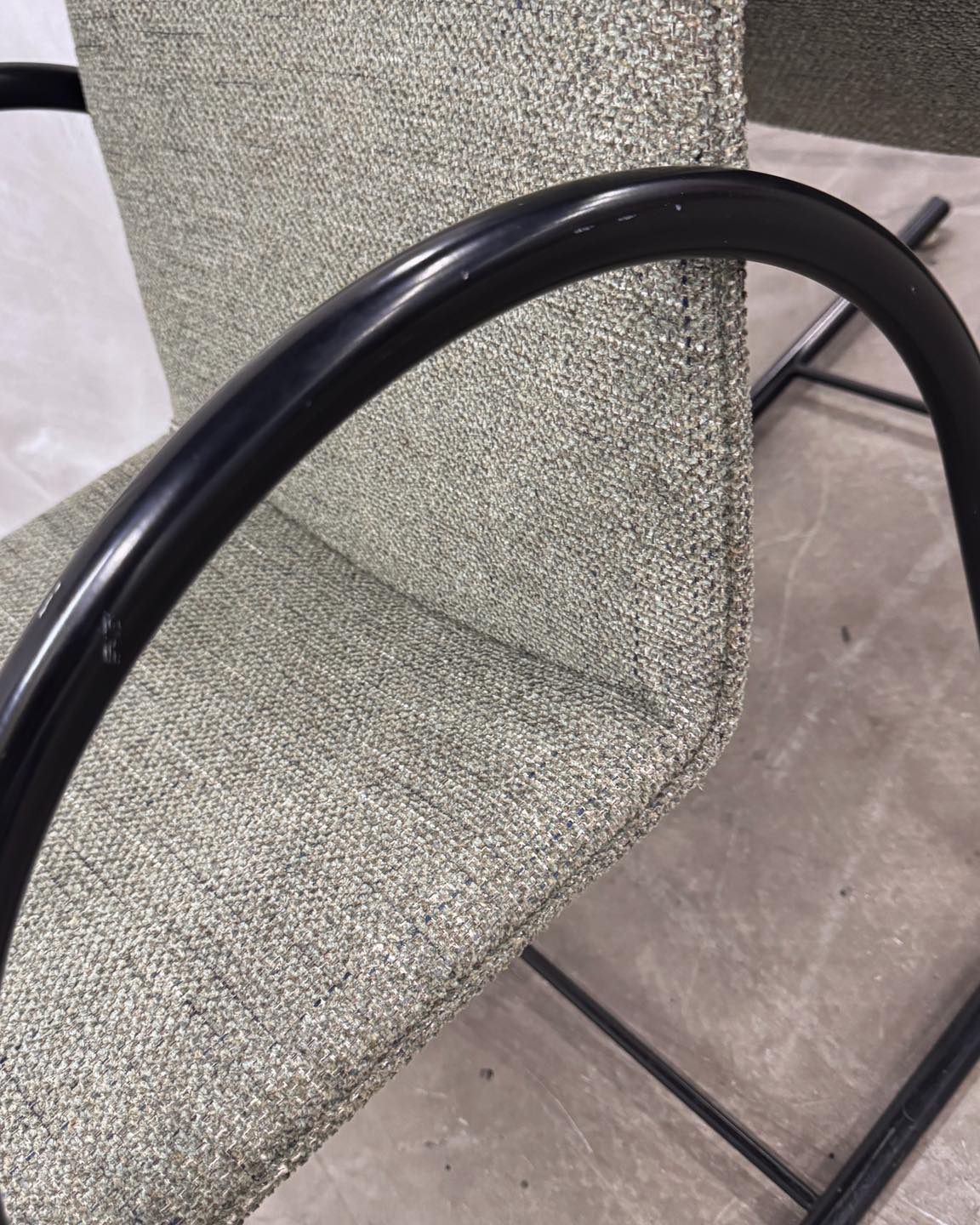 Stan: tapicerka po pełnej renowacji, zarówno obicie, jak i pianka. Metalowa konstrukcja stabilna, bez uszkodzeń, powłoka malarska ze śladami użytkowania w postaci zarysowań, przytarć, nieznacznych odprysków (widoczne na zdjęciach).