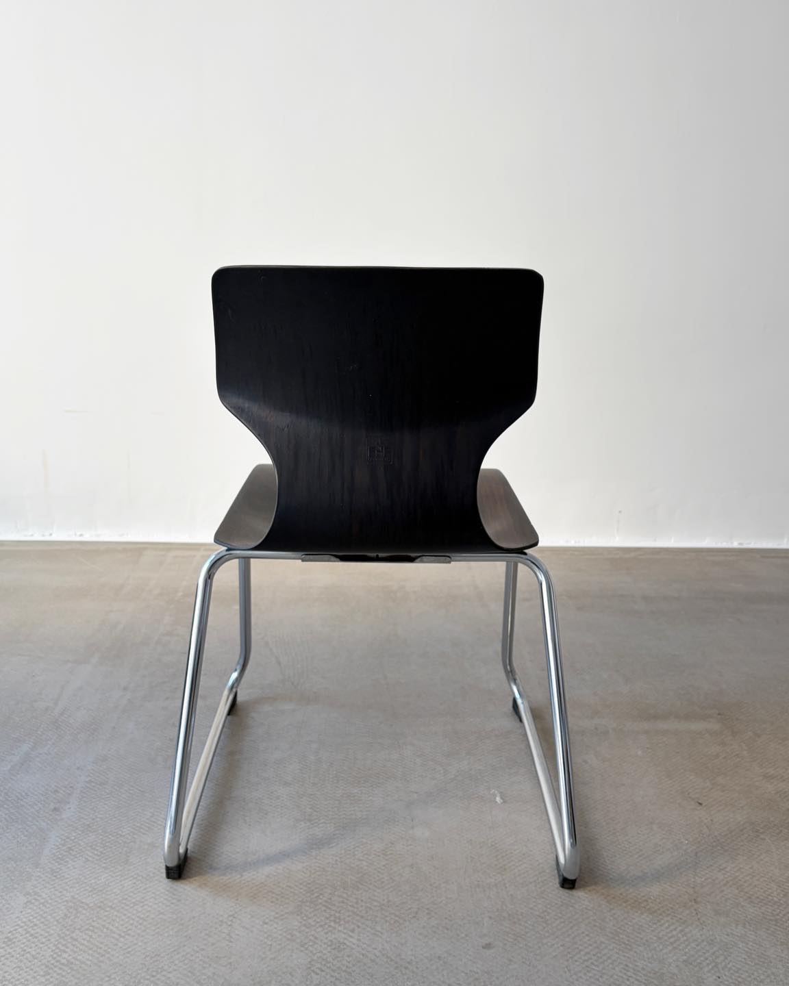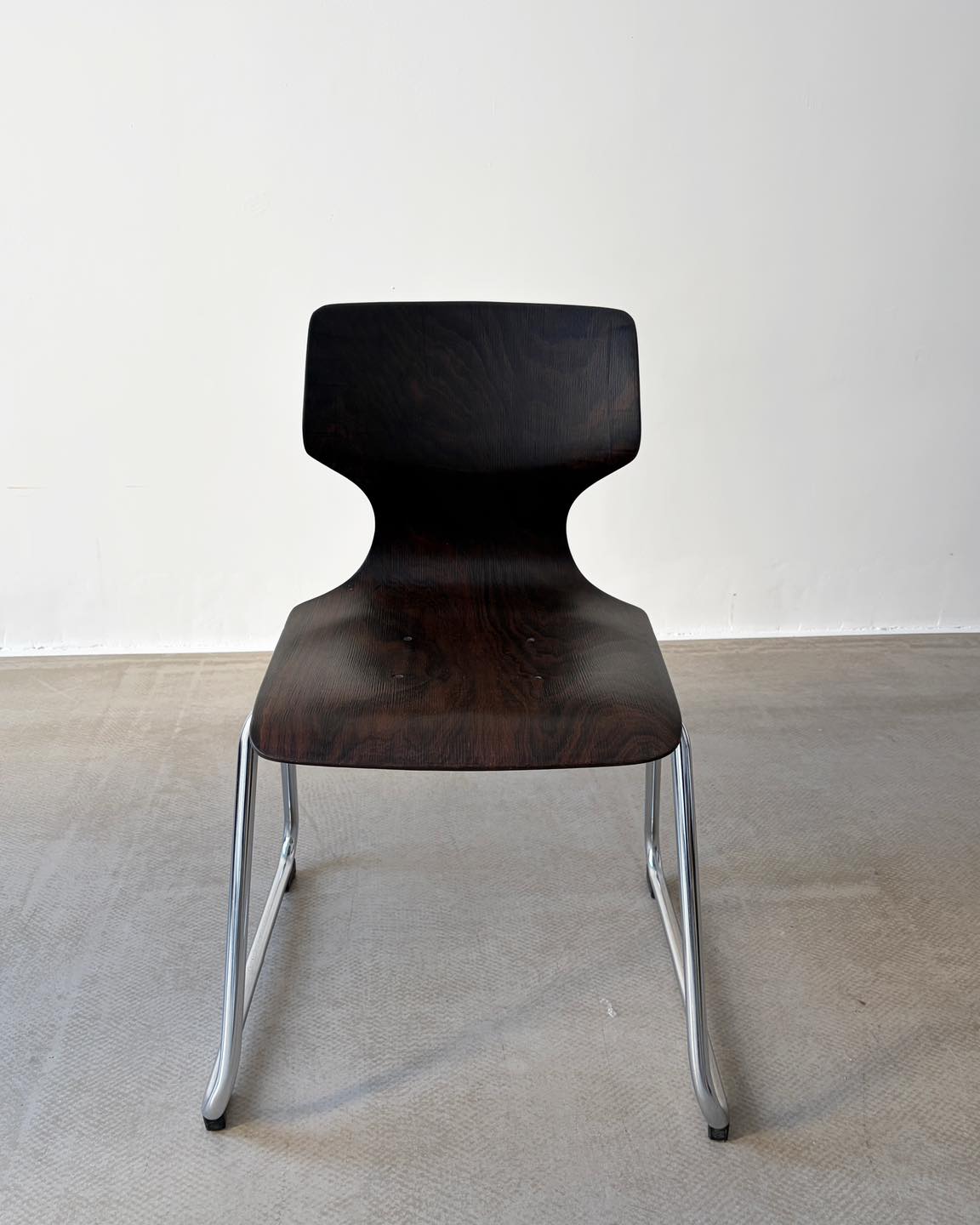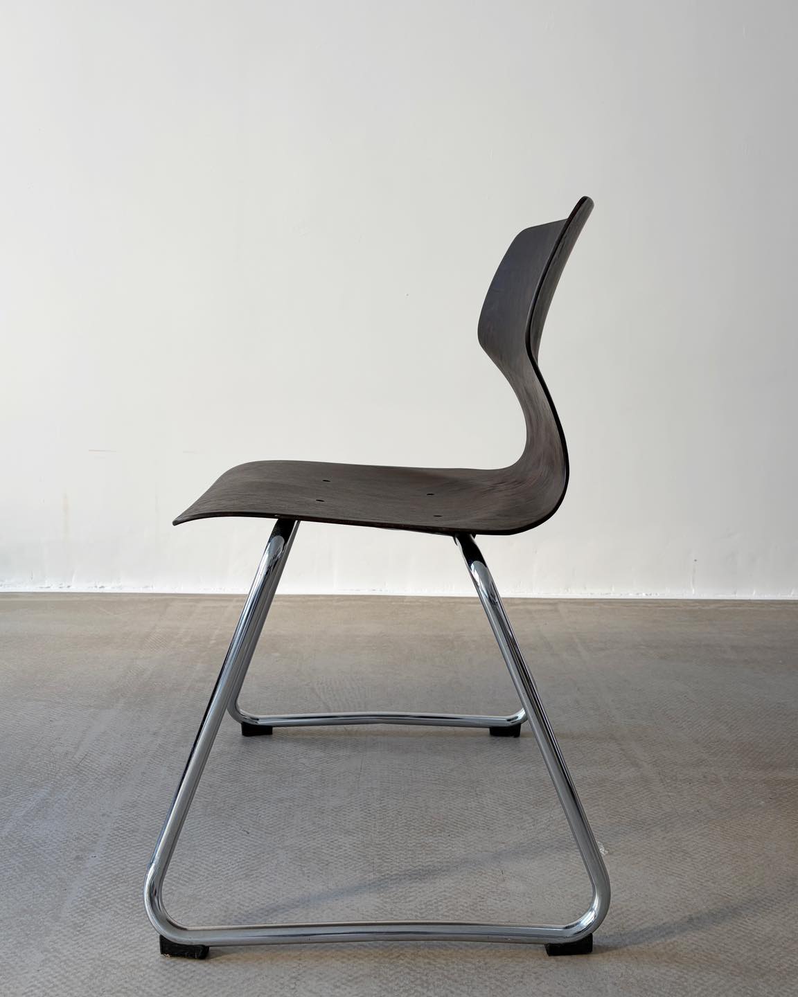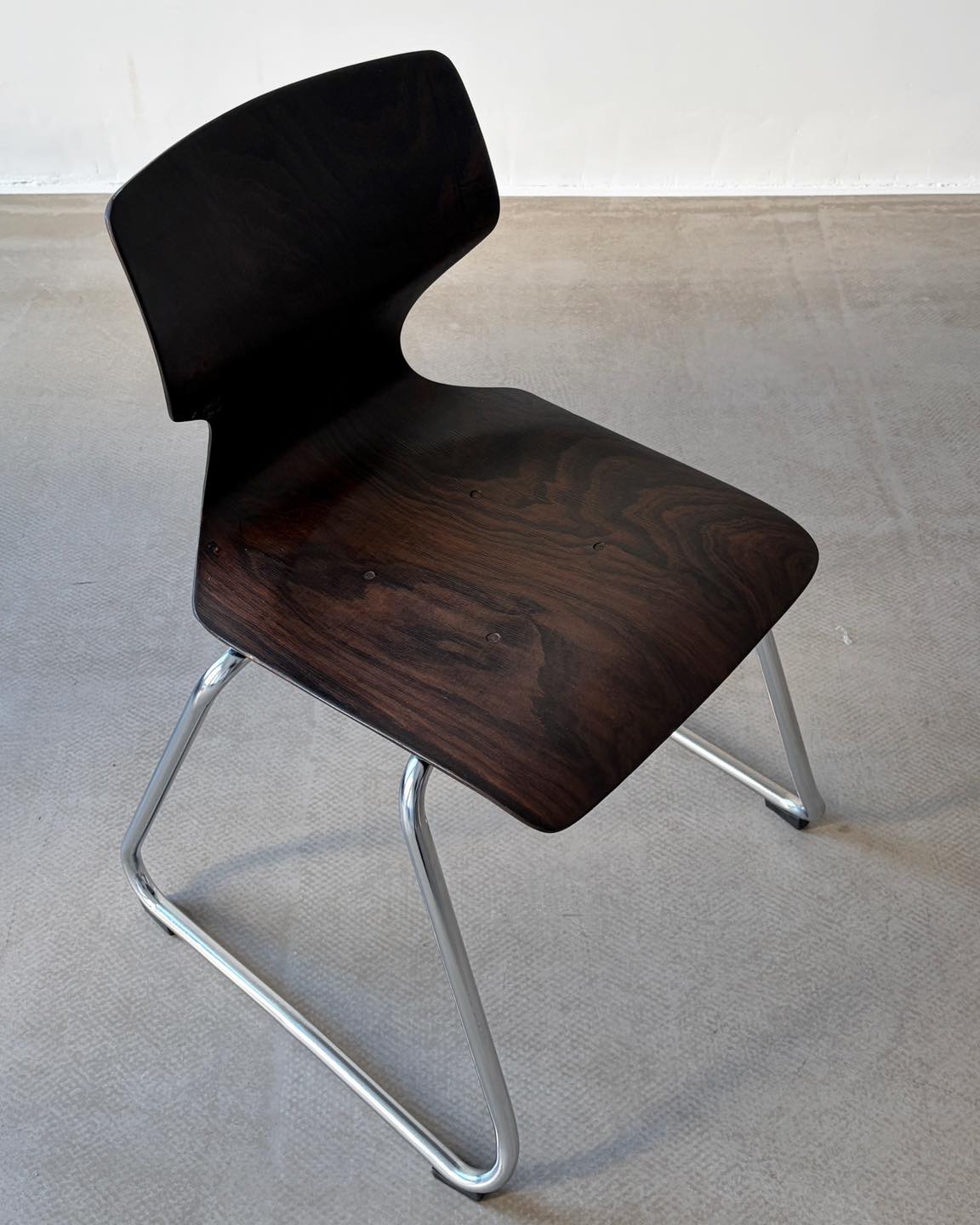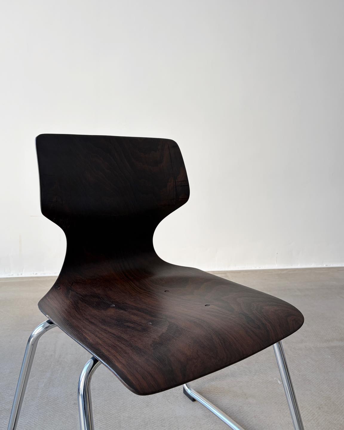 Materiały: gięta sklejka, konstrukcja z metalu, chromowana.