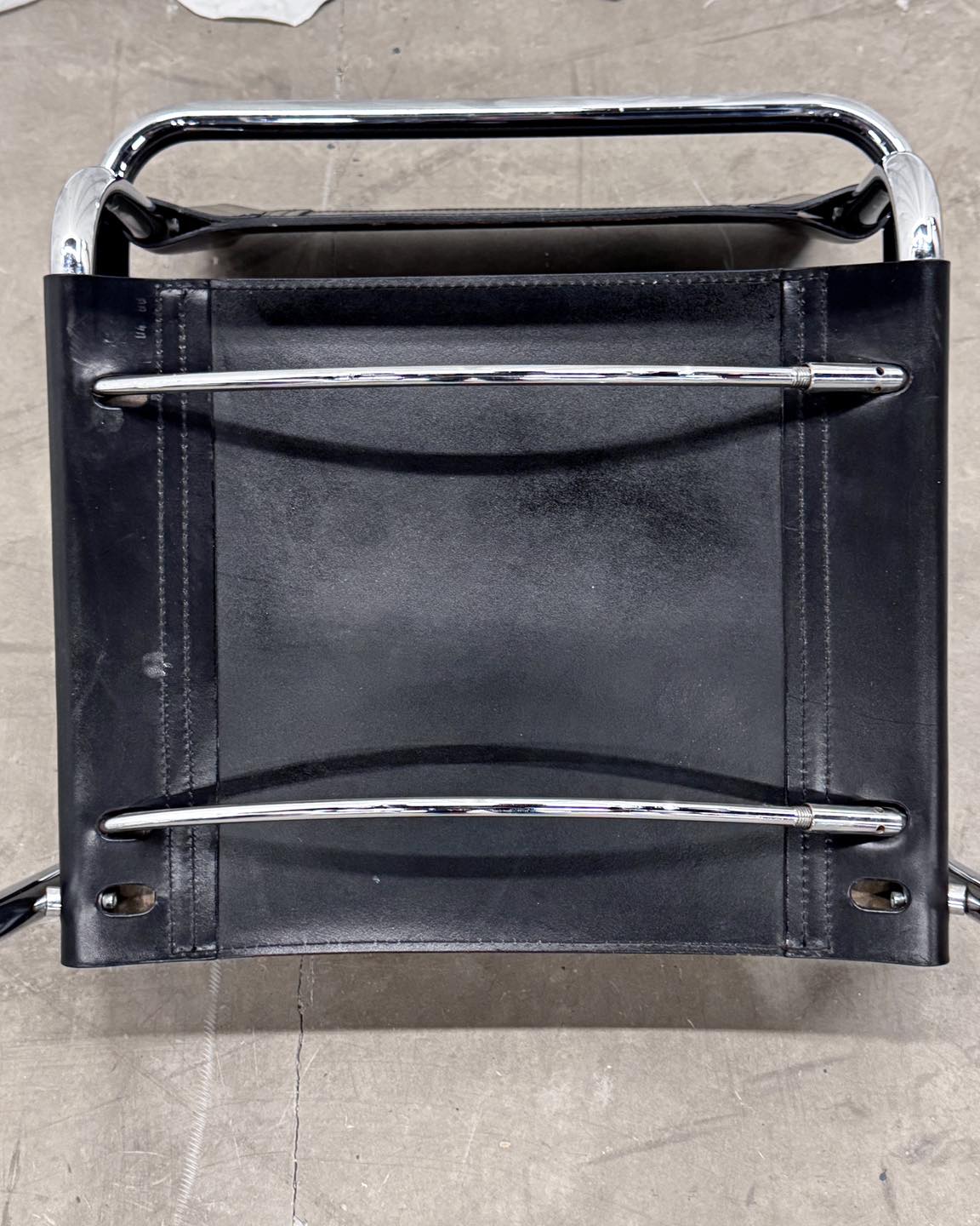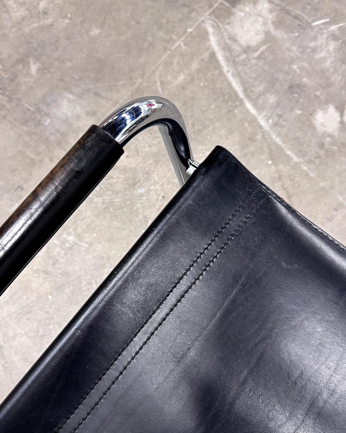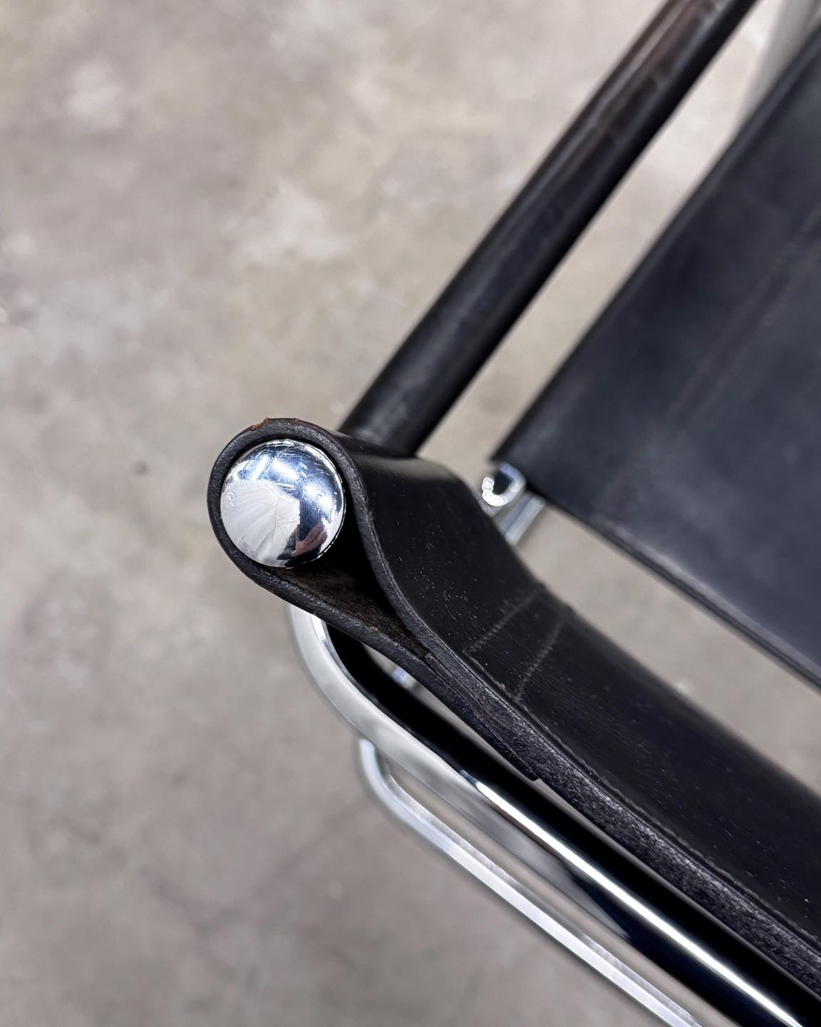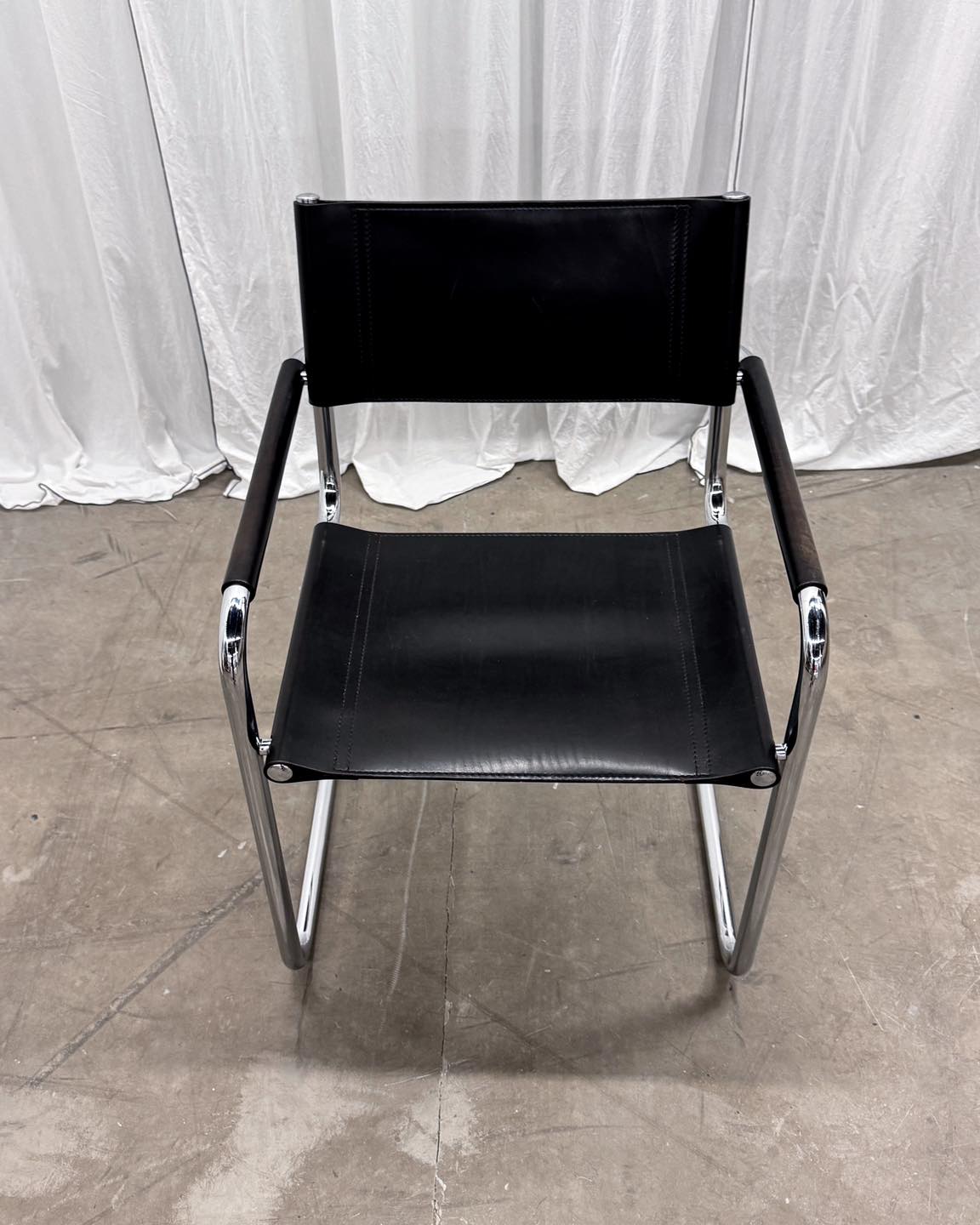 Krzesła wspornikowe ze skóry w kolorze czarnym. Projekt - Mart Stam / Marcel Breuer w latach 20