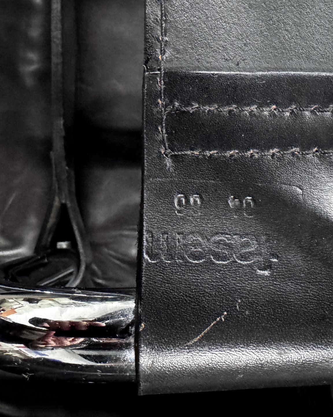 Materiały: stelaż z giętej rury chromowanej, wysokiej jakości gruba skóra naturalna