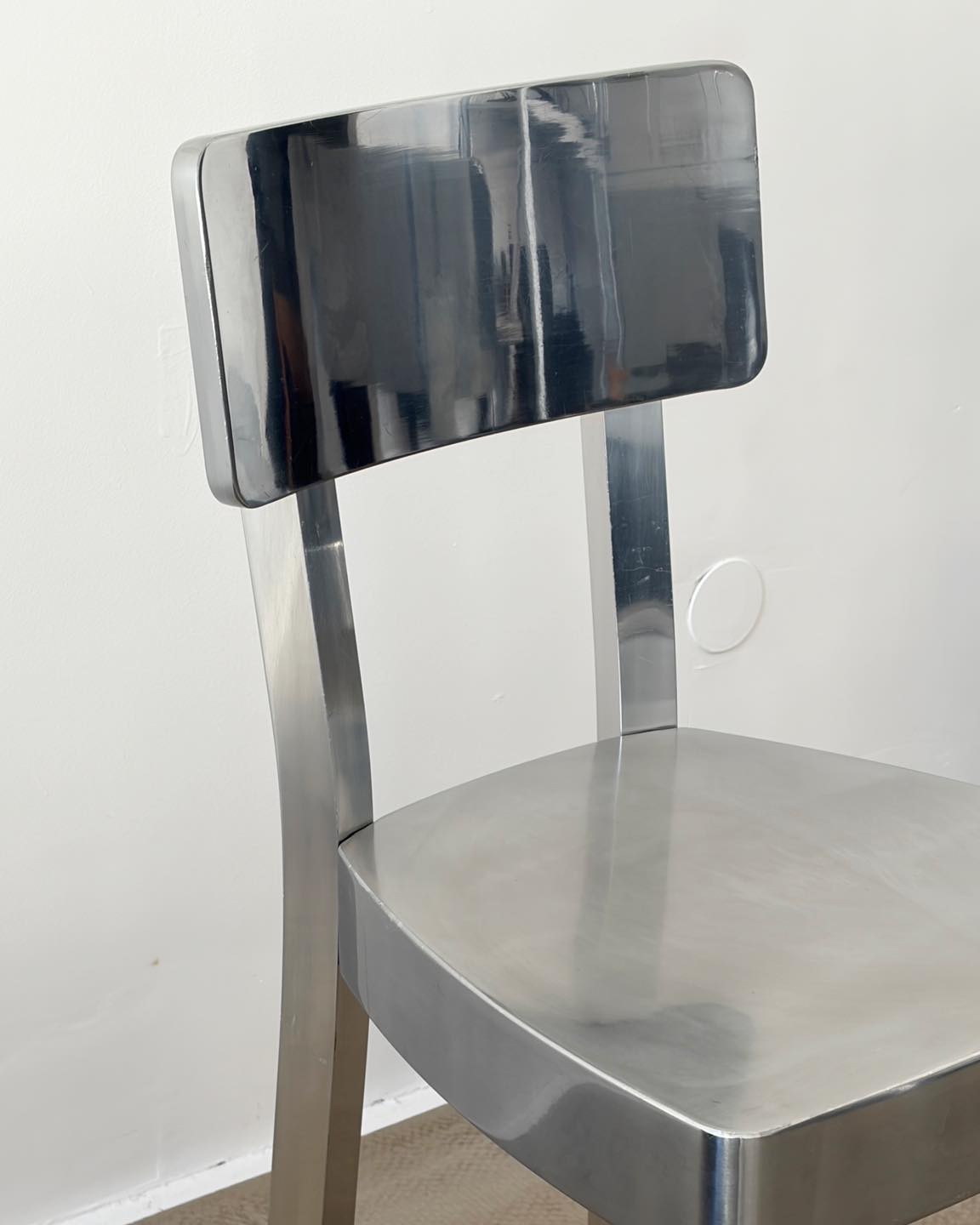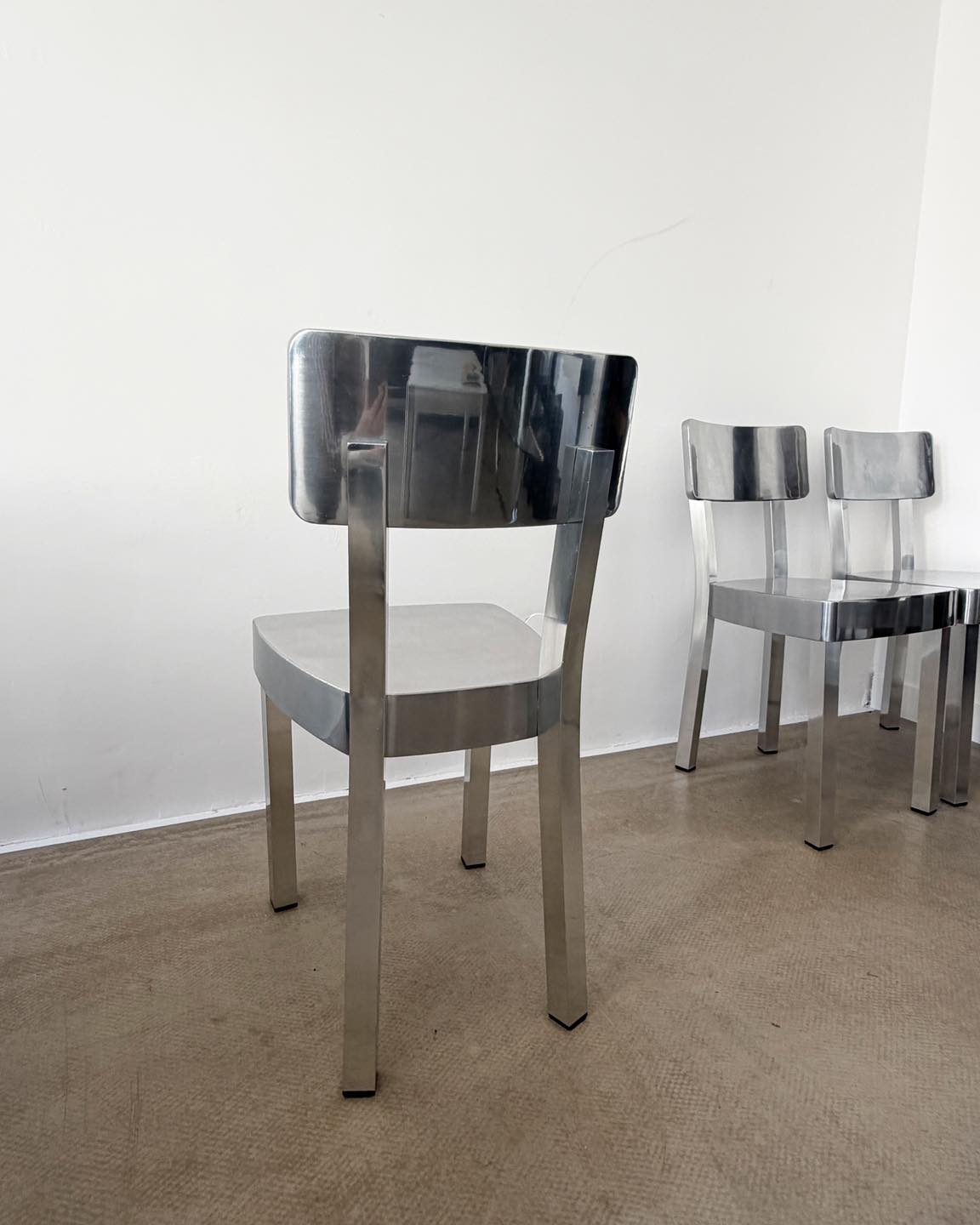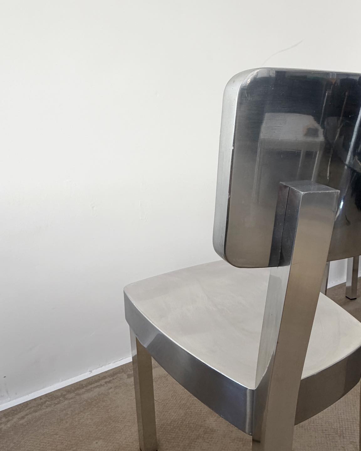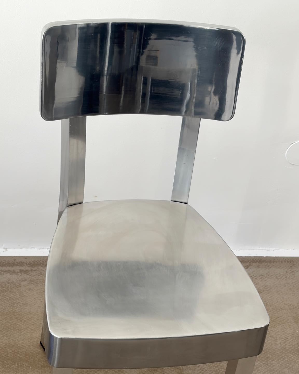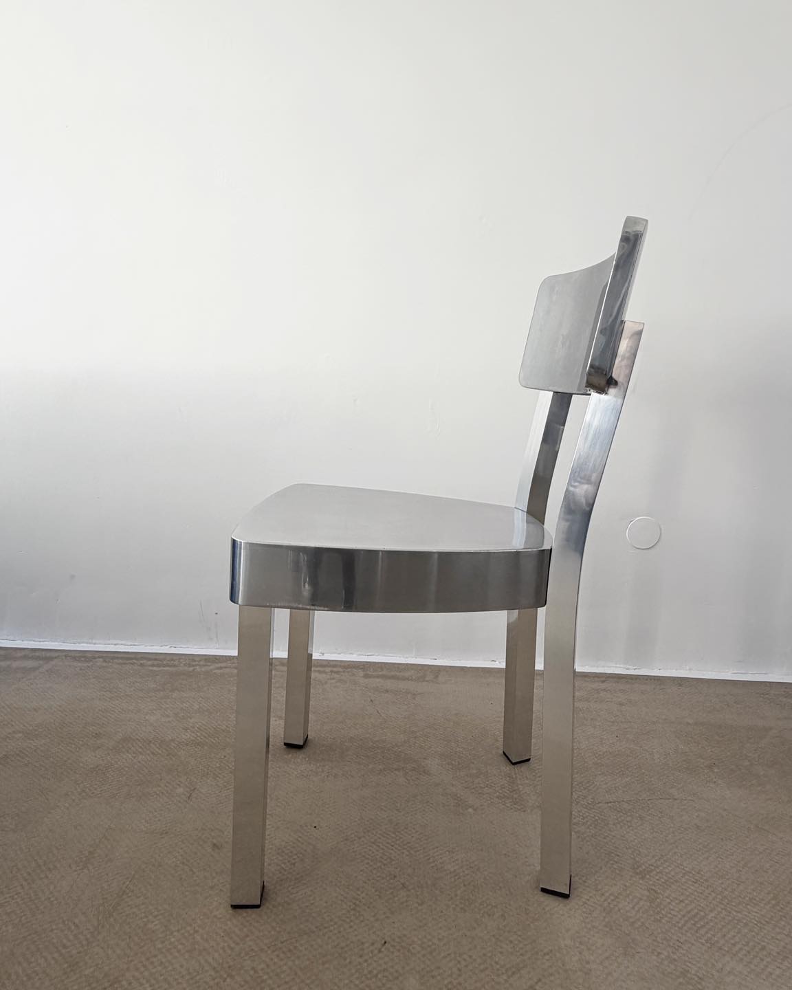 Projekt skupiony na formie, klasycznego, prostego, dobrze znanego nam krzesła, jednak wykonanego nie z emanującego ciepłem drewna, a z bijącego chłodem metalu. Taki interesujący kontrast.