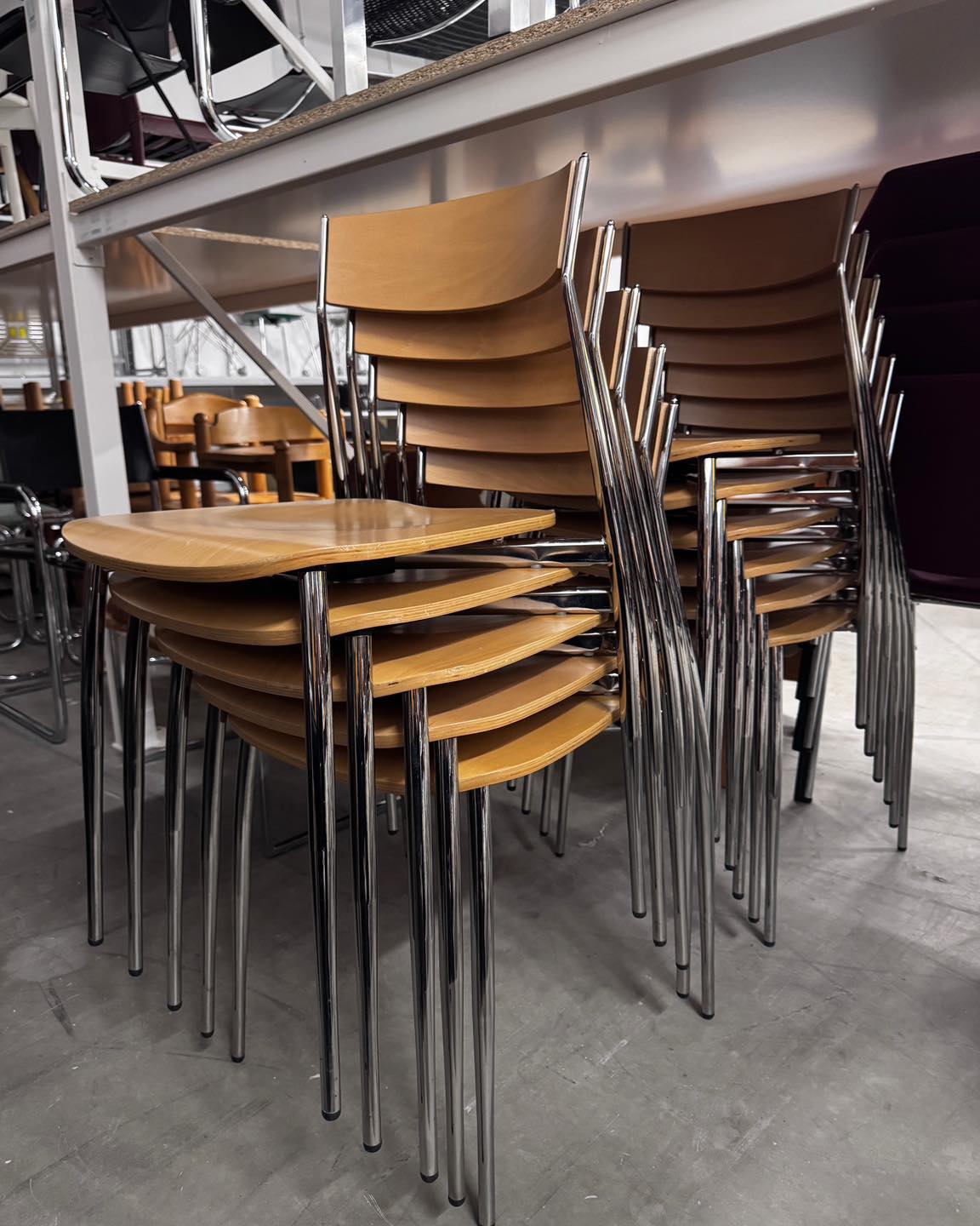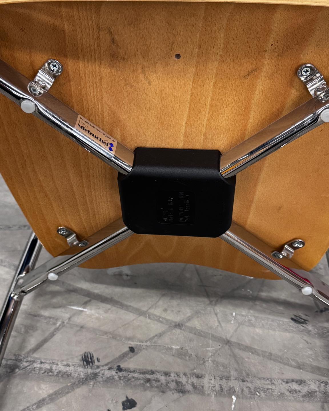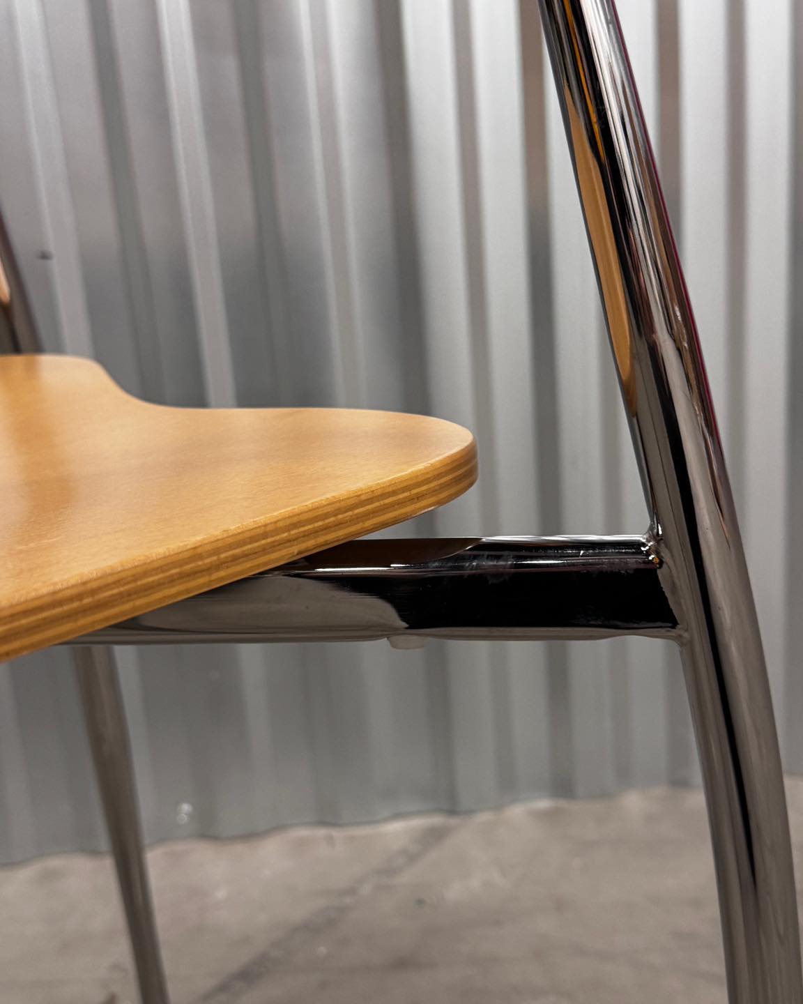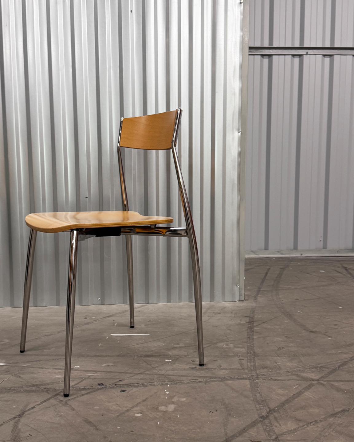 Materiały: chromowana konstrukcja, sklejka.