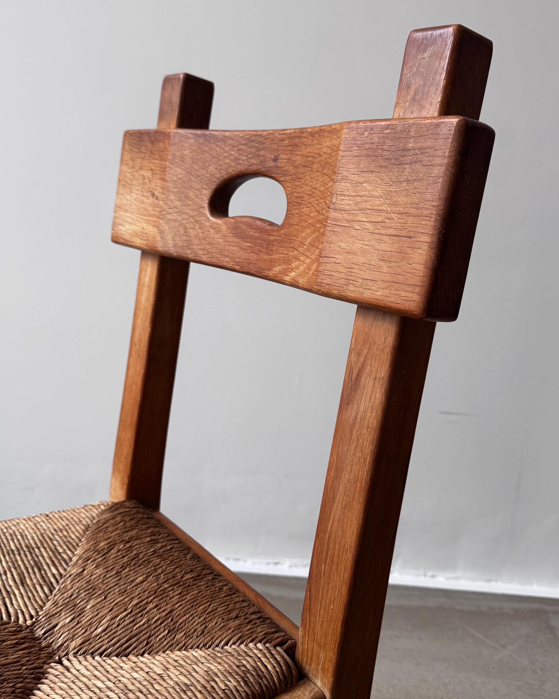 Surowa, prosta forma spotyka w tym projekcie tradycyjne techniki stolarskie, ale wyplatane siedziska dodają ciepła i uroku. Z patyną vintage.