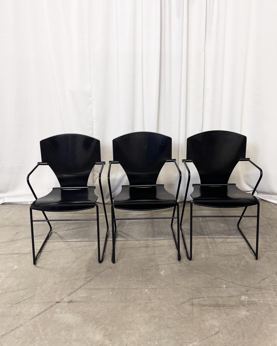 Stan: krzesła posiadają ślady użytkowania pokazane na zdjęciach, co jest uwzględnione w cenie oferowanych egzemplarzy.