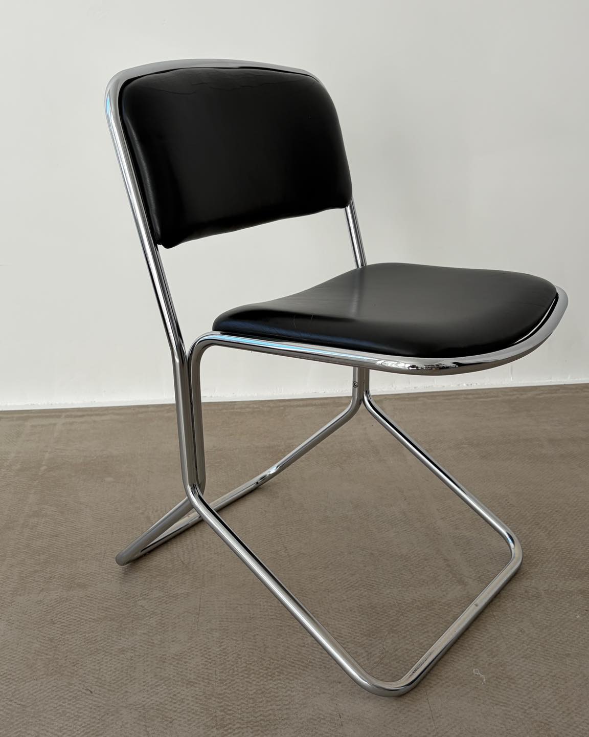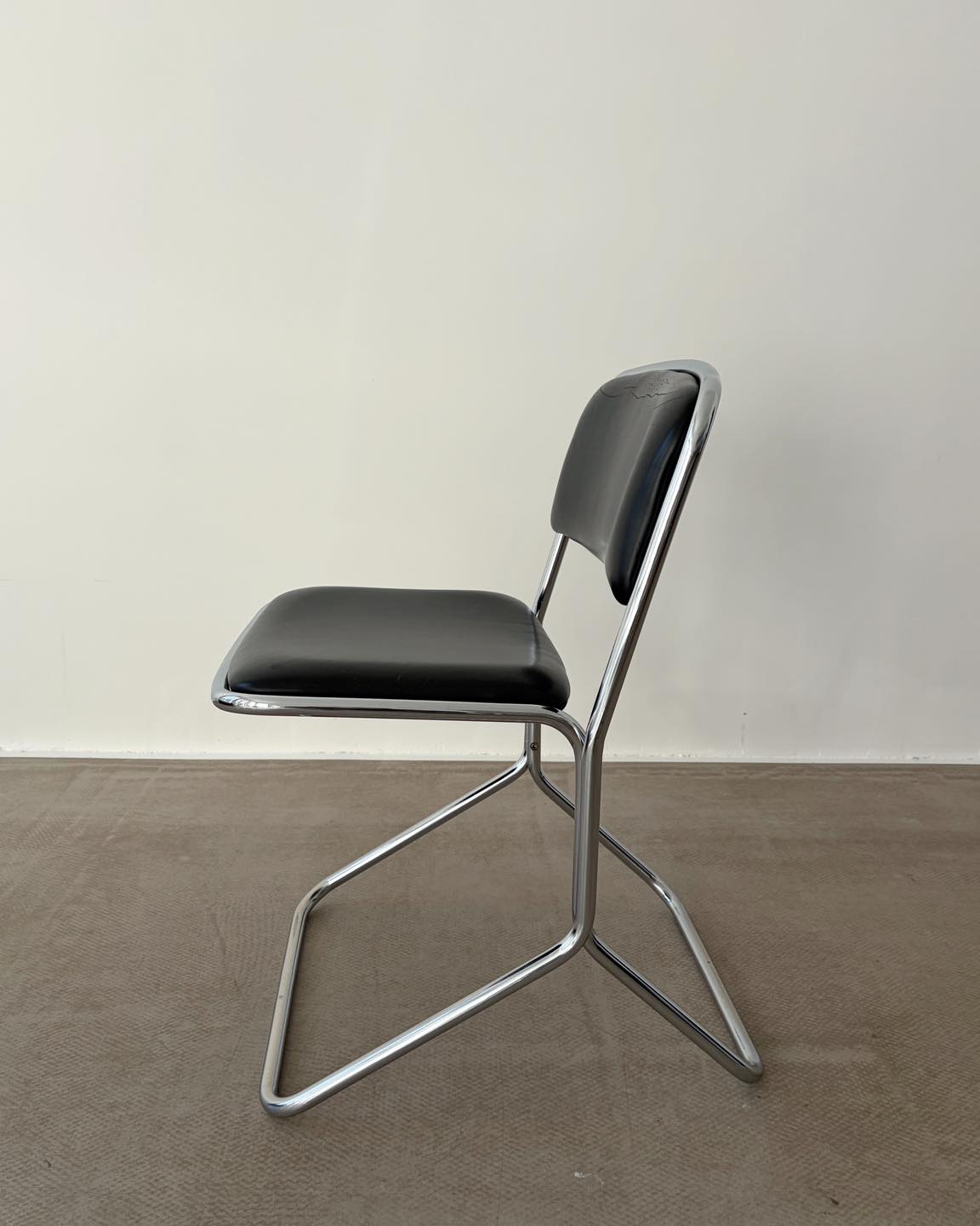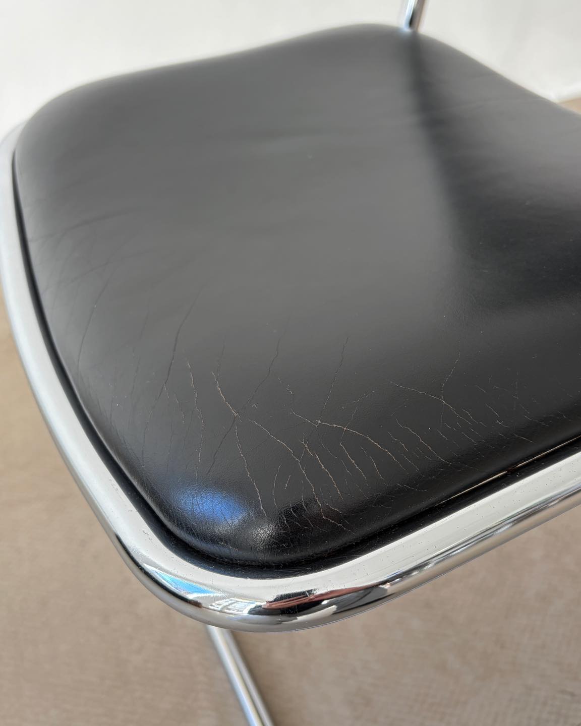 Materiały: konstrukcja z chromowanej rurki, siedzisko i oparcie ze skóry.