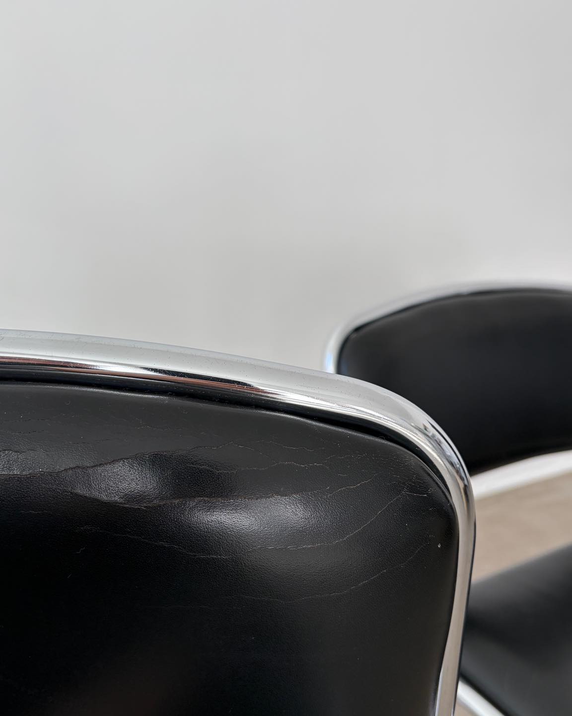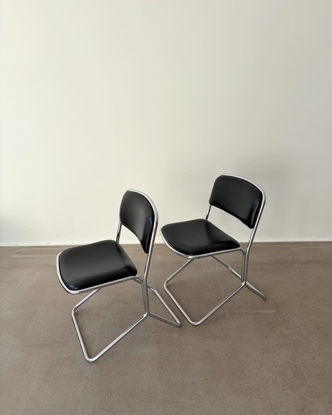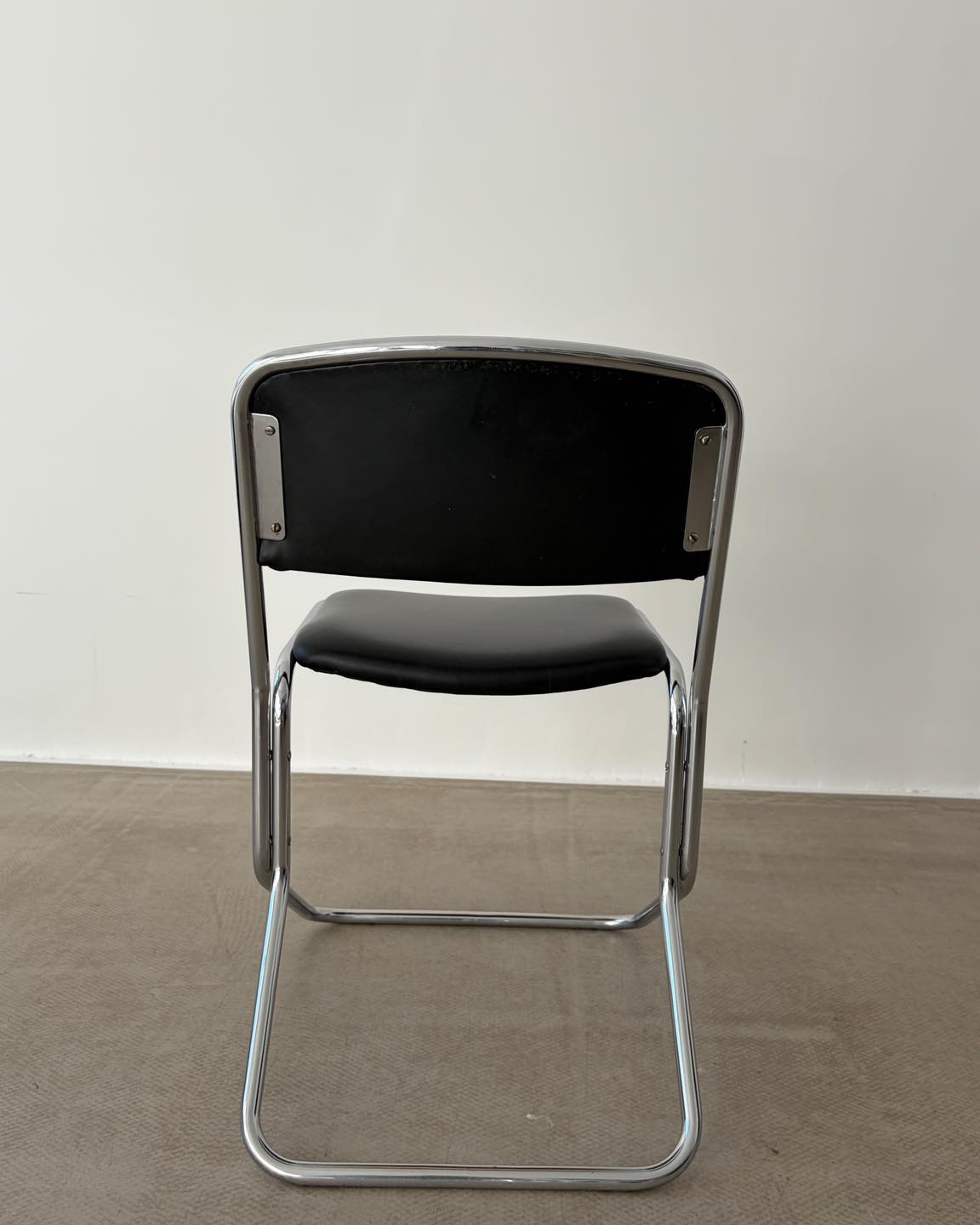 Materiały: konstrukcja z chromowanej rurki, siedzisko i oparcie ze skóry.