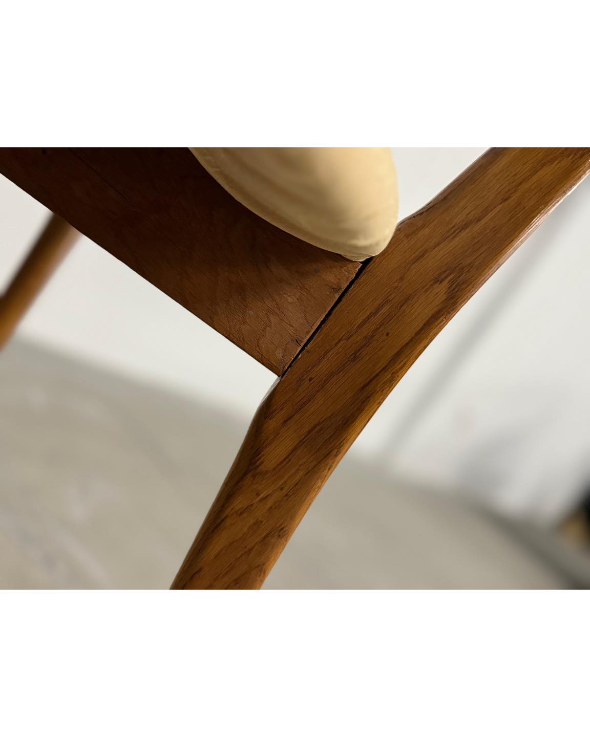 Charakterystyczna forma połączona z ciepłą barwą drewna. Mebel do własnej aranżacji — wymiana tapicerki jest banalnie prosta.