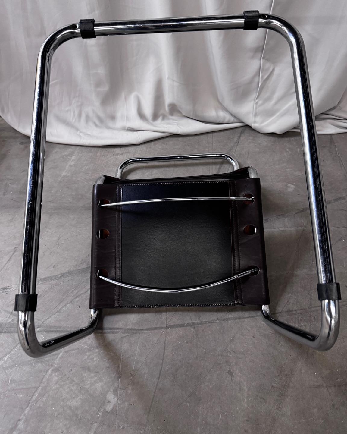 Materiały: skóra naturalna, metalowa konstrukcja chromowana.