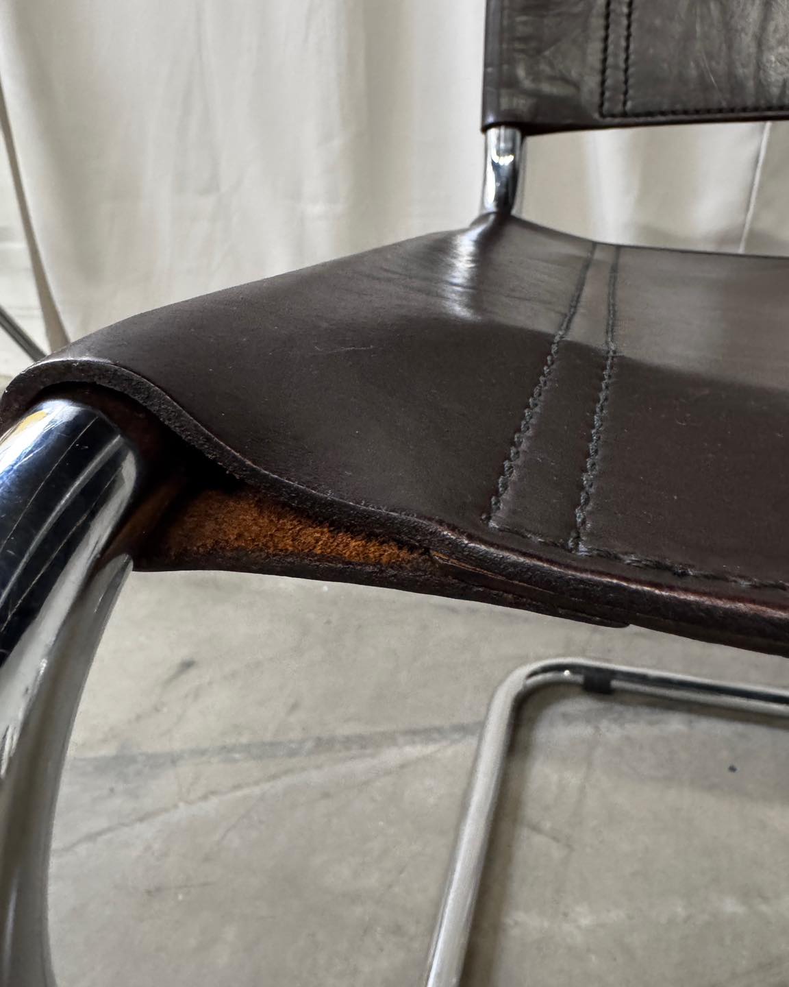 Stan: dobry. Konstrukcja stabilna, bez wad. Skóra w stanie bardzo dobrym, z nielicznymi śladami użytkowania w postaci rys i przytarć. Chrom w stanie dobrym, drobne ubytki w powłoce, rysy i przytarcia.