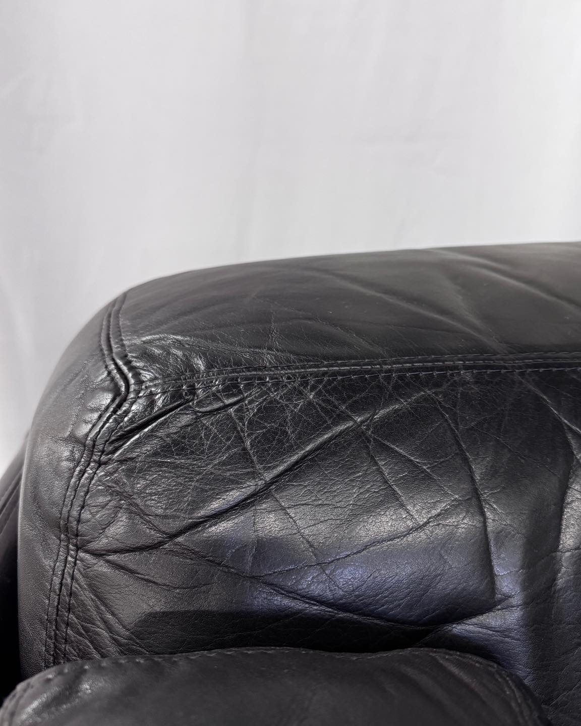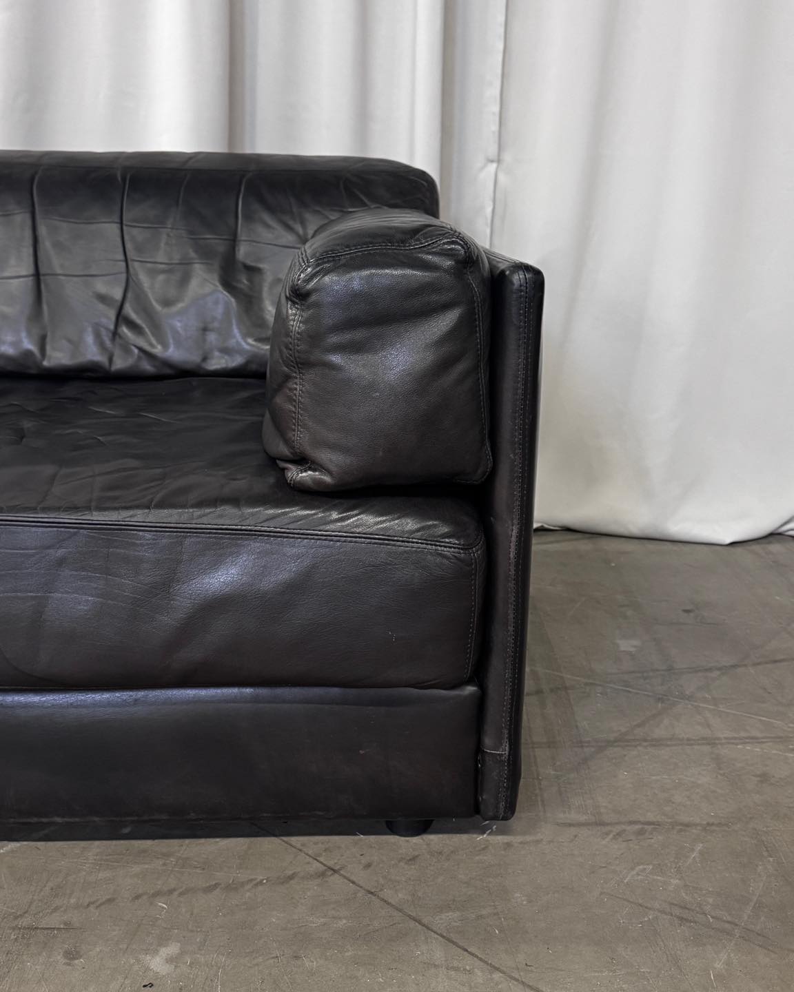 Materiały: wysokiej jakości, miękka skóra naturalna w kolorze bardzo ciemnego brązu wpadającego w czarny. Tkanina tapicerki na elementach niewidocznych została wymieniona.