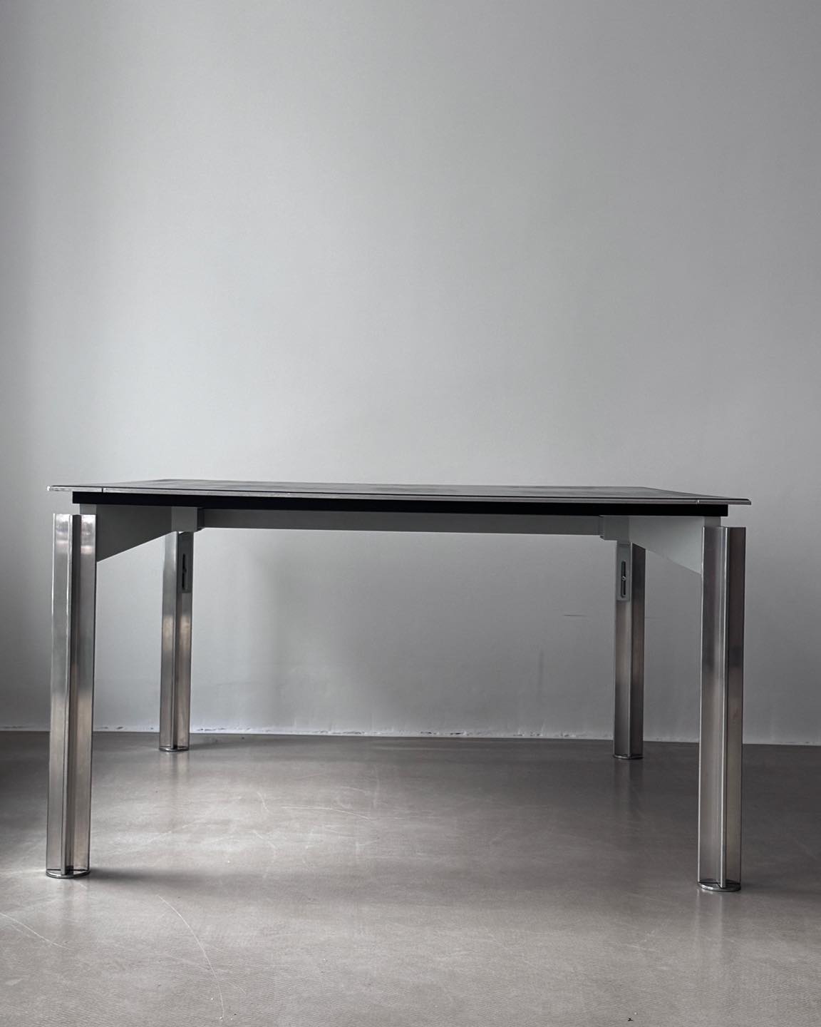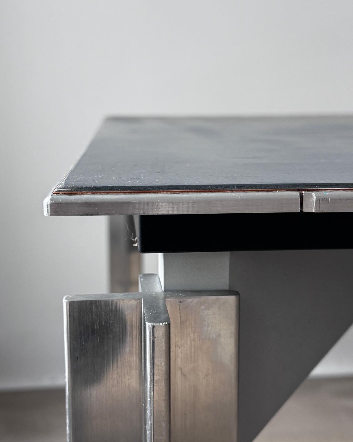 Fantastyczna forma, którą tworzy unoszący się ponad metalowymi nogami blat. Zdecydowanie spektakularny obiekt. Polecam do biura, pracowni projektowej.