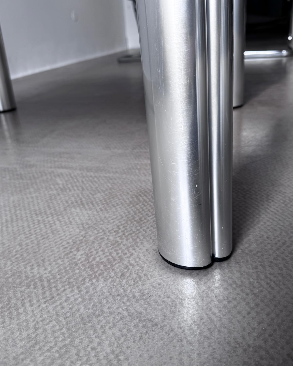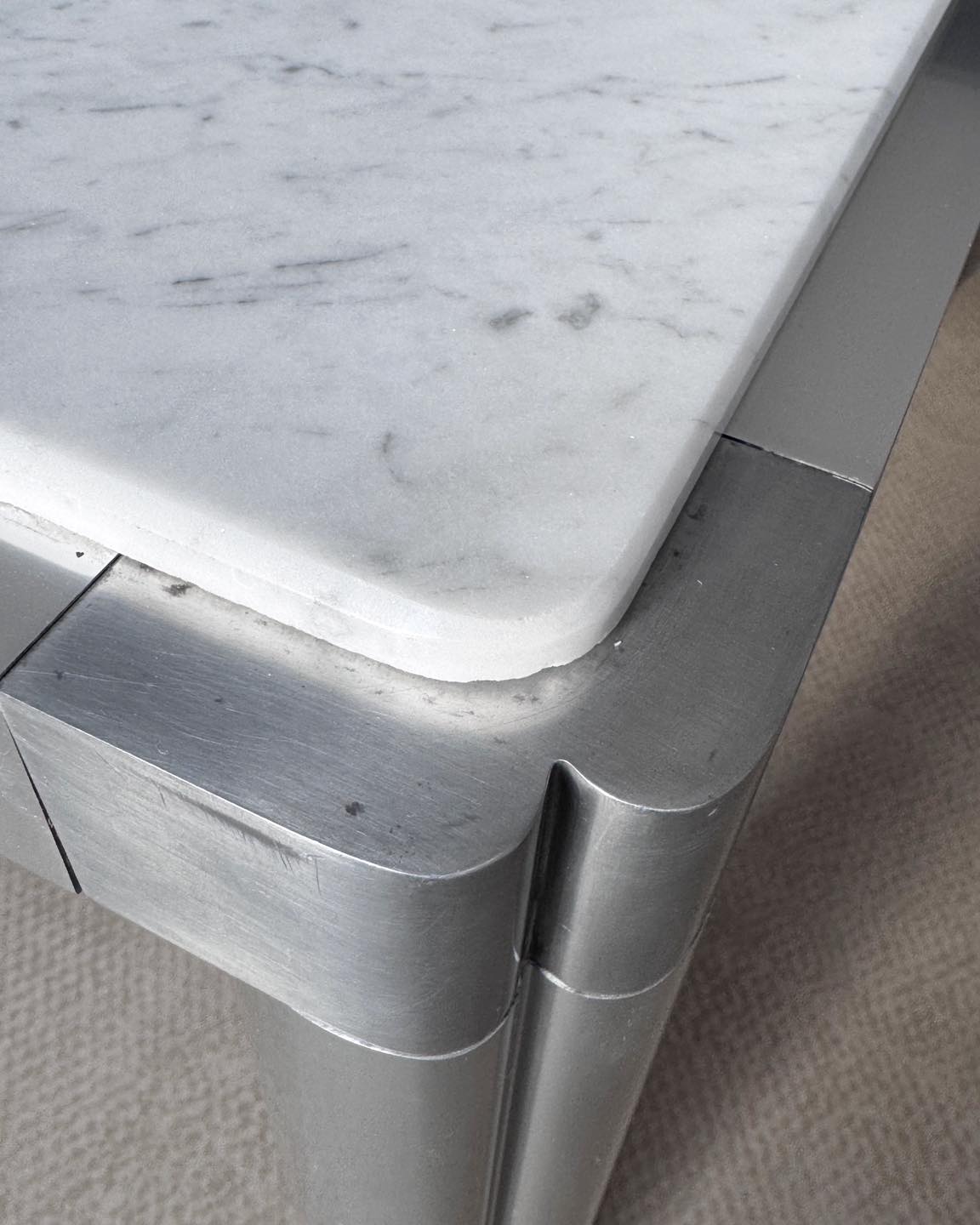 Stan: dobry vintage. Podstawa i marmur bez wad, zarysowania na aluminium będące wynikiem użytkowania, zarysowanie na blacie.