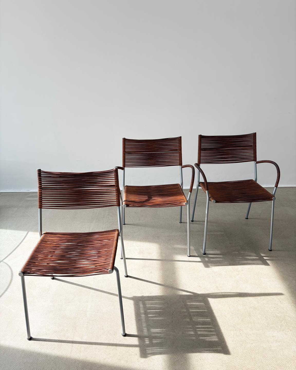 Zestaw 3 krzeseł z serii Miss B, projekt Tito Agnoli dla włoskiej marki Pierantonio Bonacina