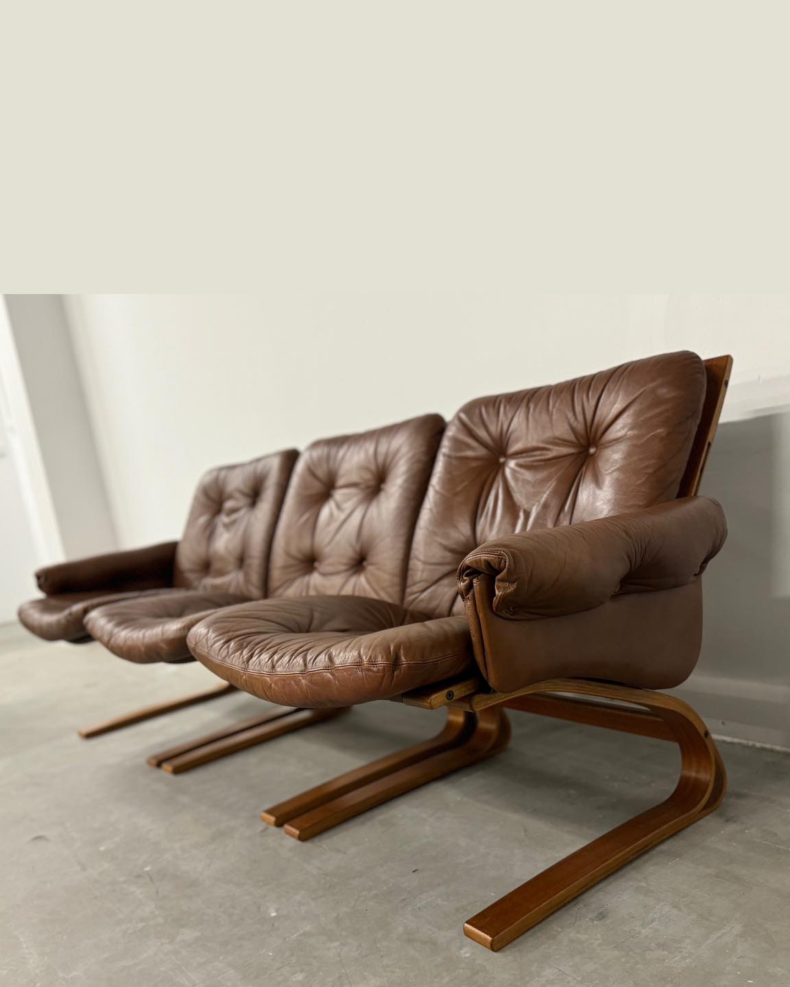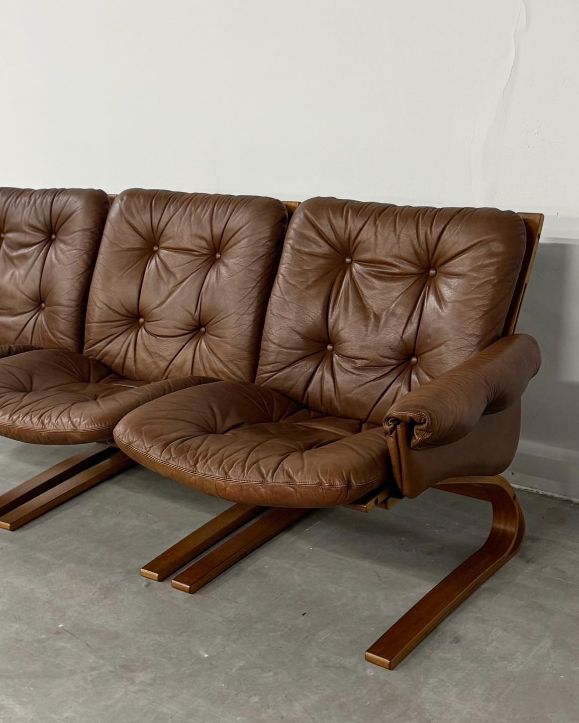 4-elementowy set z lat 70. oferuje różne możliwości konfiguracji jak: sofa 3-osobowa, sofa 2-osobowa i fotel, inne w zależności od potrzeb.