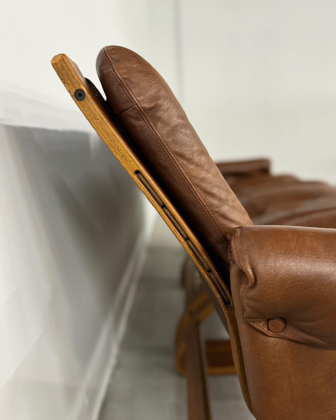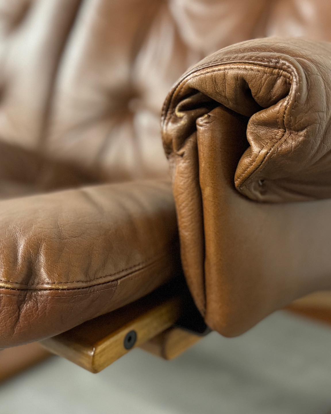 Materiały: skóra naturalna + teakowy stelaż